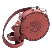 Фляга круглая 0,5 л, обтянутая натуральной кожей с ремнем, арт.541ФК-КТ1