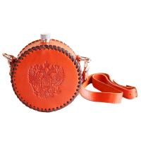 Фляга круглая 0,7 л, обтянутая натуральной кожей с ремнем