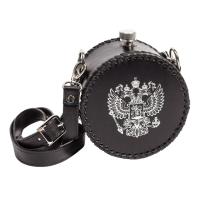 Фляга круглая 1 л, обтянутая натуральной кожей с ремнем, арт.544ФК-ЧТ
