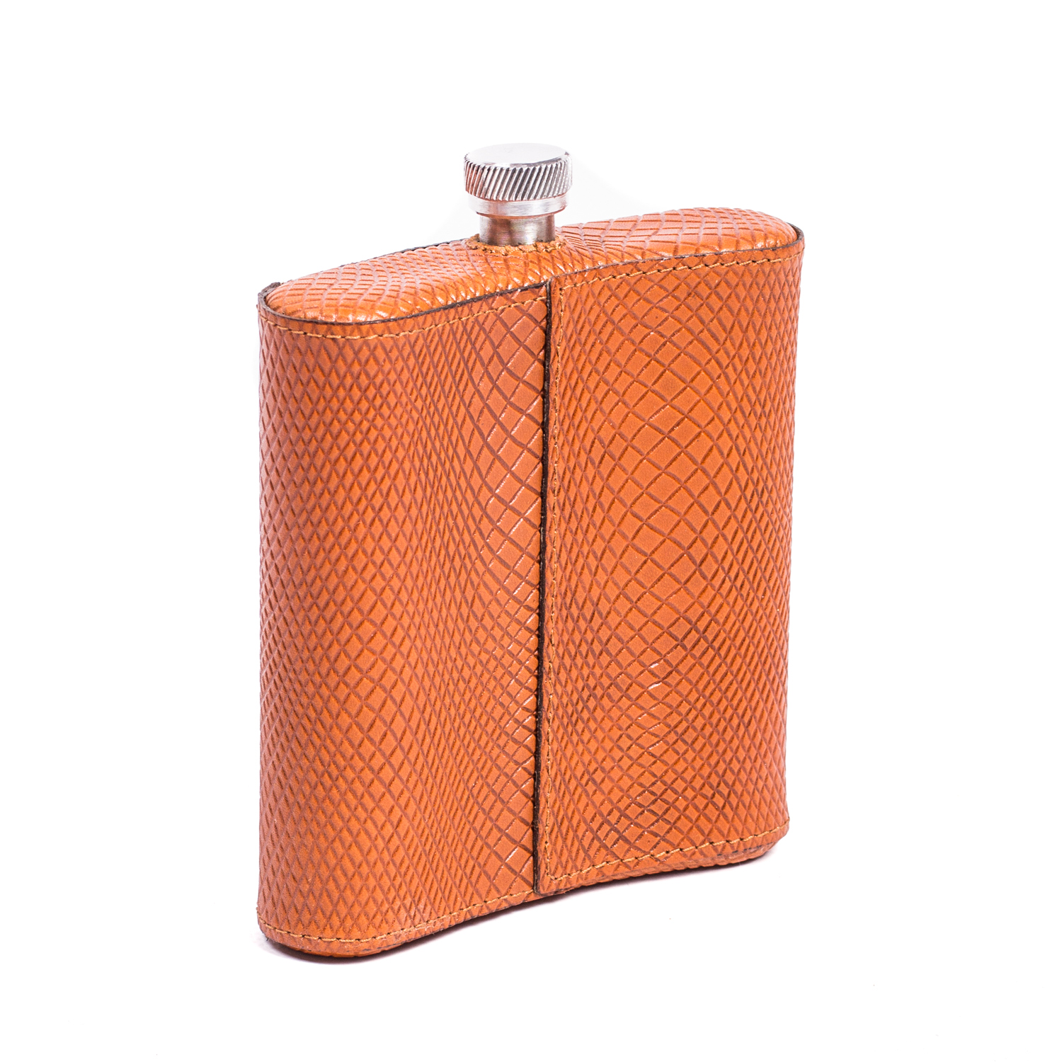 Фляга плотно обтянута кожей. Снять кожаный чехол не возможно
