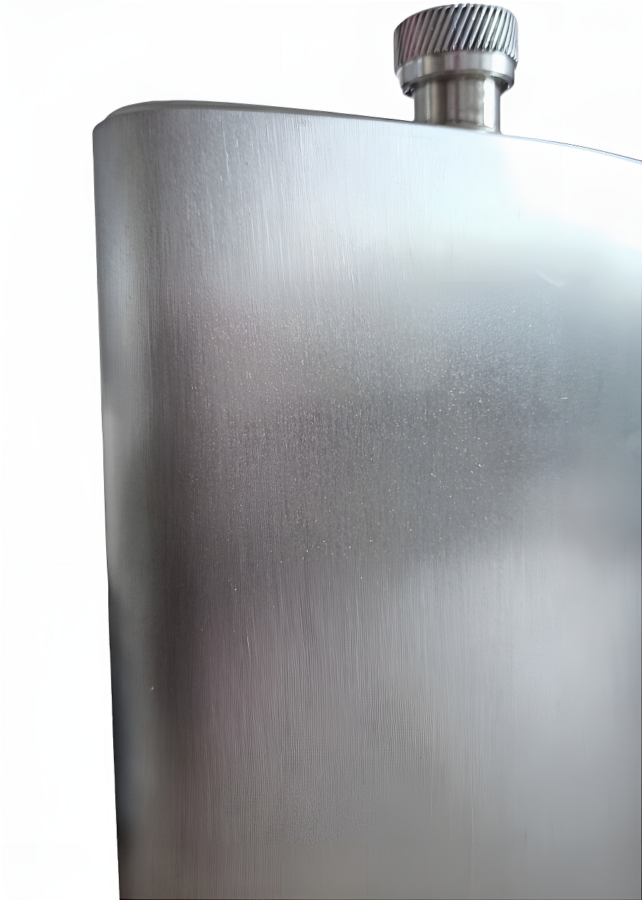 Стенки обработаны методом шлифовки, что придает фляжке матовый сатиновый вид.