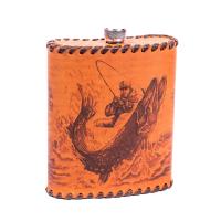 Фляга походная 0,56 л в чехле из натуральной кожи, арт.Рыбалка