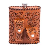 Фляга походная 0,56 л в оплетке из натуральной кожи с ножом и стопками, арт.562ФК-Г