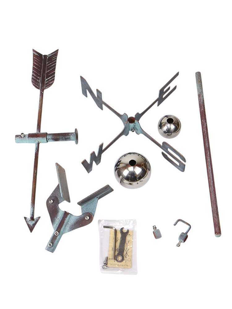 Флюгер представляет собой металлический флажок, сбалансированный грузом, который вращается в соответствии с направлением воздушных потоков.