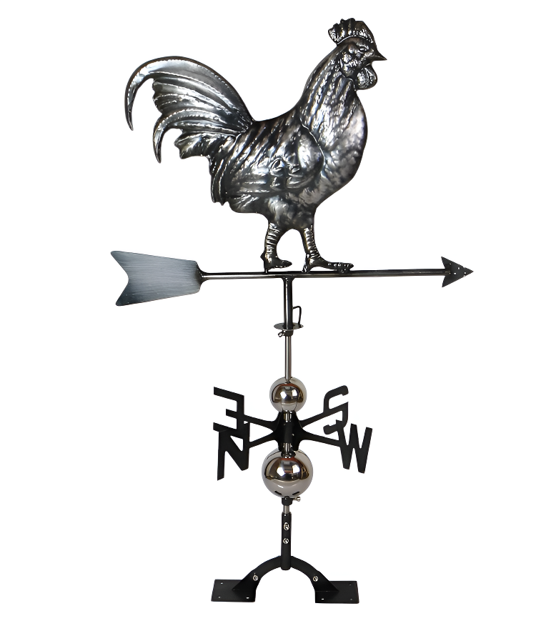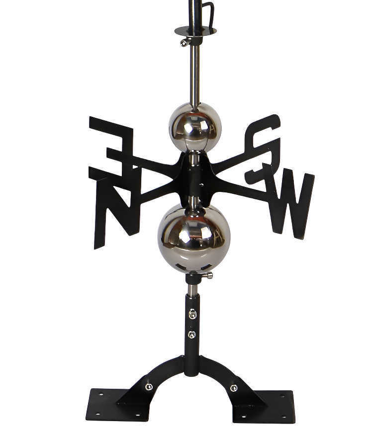 Флюгер представляет собой металлический флажок, сбалансированный грузом, который вращается в соответствии с направлением воздушных потоков.