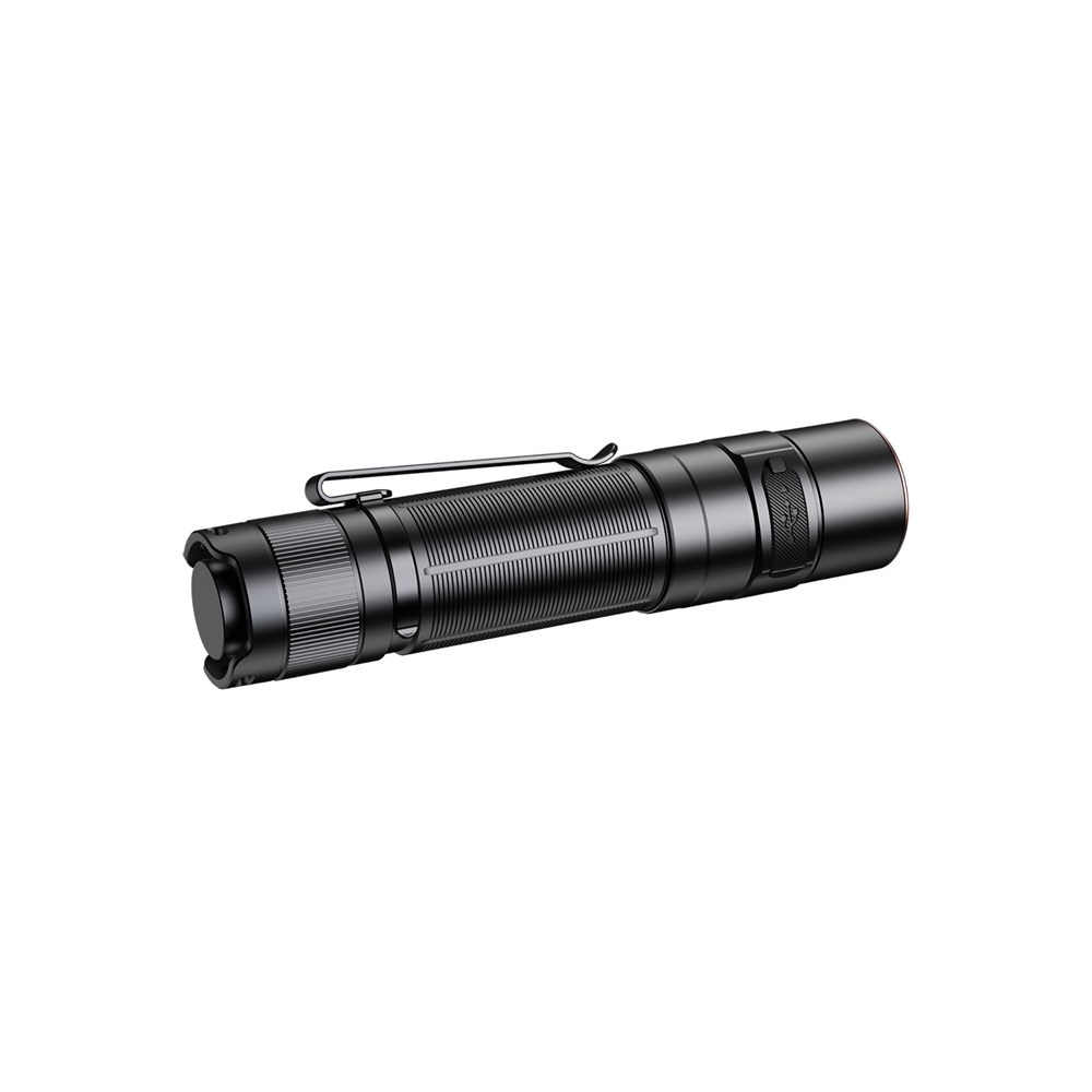 Размеры Fenix E35R сопоставимы с габаритами современных смартфонов, поэтому фонарь можно носить не только в сумке, но и в кармане одежды. Его длина составляет 120 миллиметров, а диаметр головы и хвоста практически одинаков — 26.5 и 24.8 миллиметров соответственно.