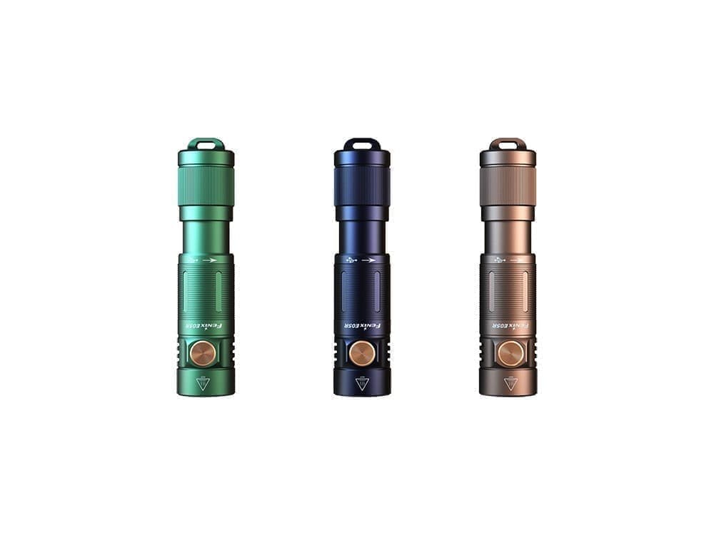 Модель Fenix E05R является компактным и достаточно лёгким фонарём в виде мини-брелка. Одна из любопытных особенностей моделей – то, что корпус фонарика идёт в трёх разных оттенках. А именно – в чёрном, зелёном и бронзовом цветах. фонарь не только выполняет декоративную функцию, но ещё и гарантирует пользователю наибольший световой поток в 400 люменов. При этом расстояние действия луча достигает 64 метров. Для работы модели используется светодиод Cree XP-G2 S3, белое освещение. Питание осуществляется от встроенного аккумулятора Li-polymer ёмкостью 320 мАч.