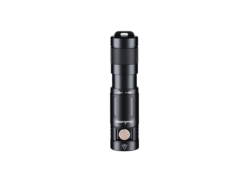 Модель Fenix E09R представляет собой небольшой и лёгкий брелок, который даёт освещение максимальной яркостью до 600 люменов. При этом дальнобойность луча достигает 124 метров. Функционирует фонарь на светодиоде Luminus SST20, а элементом питания служит встроенный Li-Po аккумулятор 800 мАч. Срок службы такого диода достигает 50 тысяч часов.