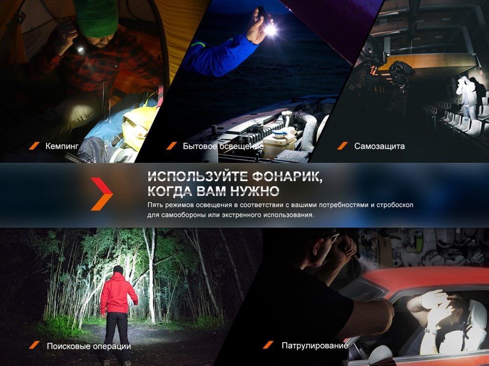 фонарь тактического типа для использования на охоте, во время путешествия и в профессиональных целях;