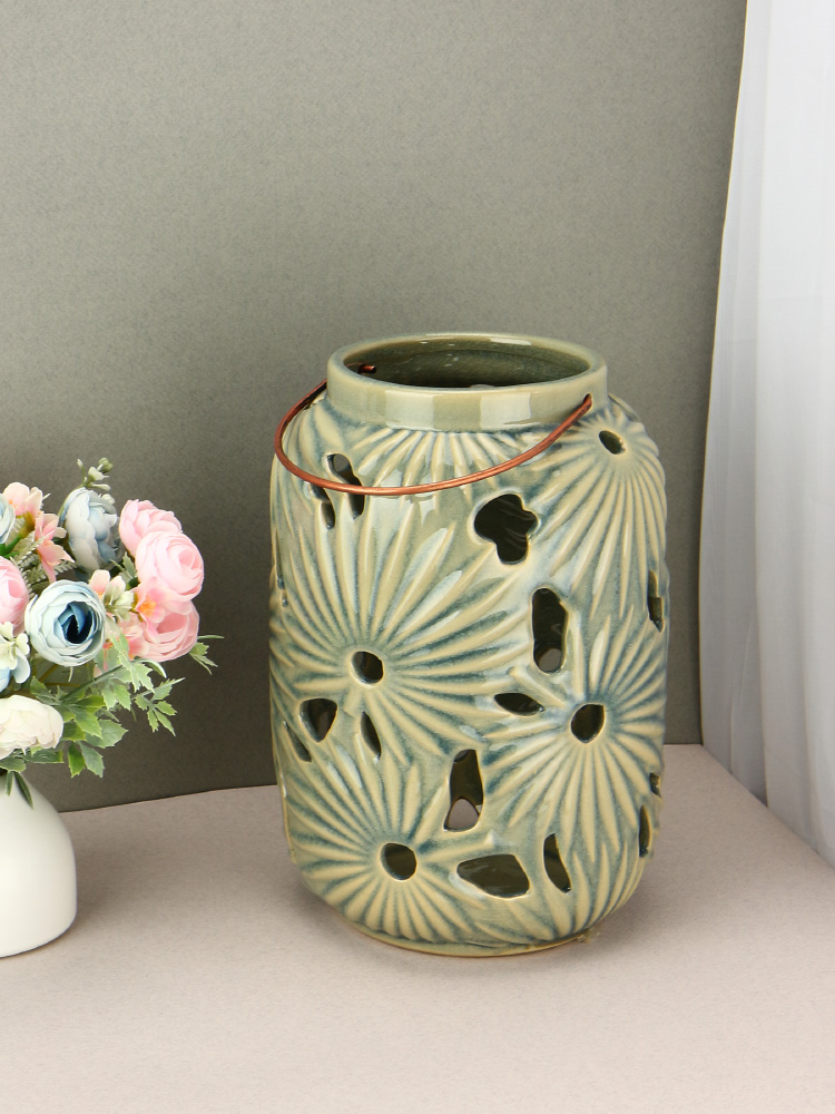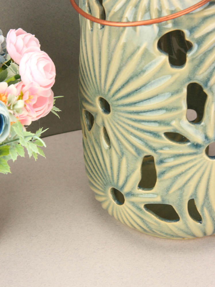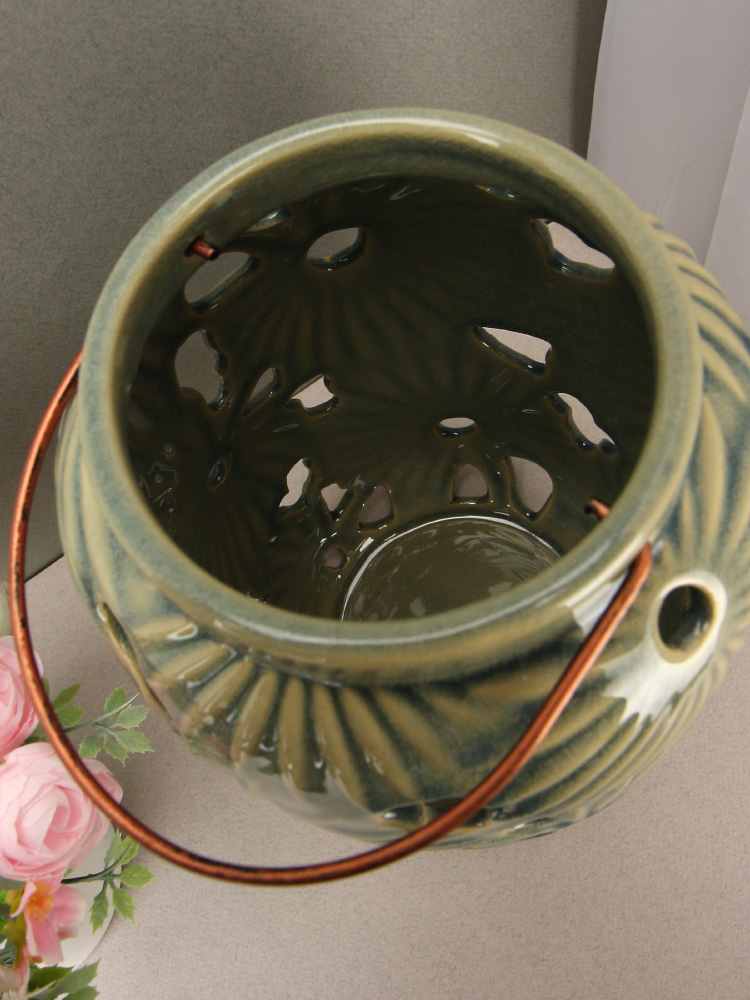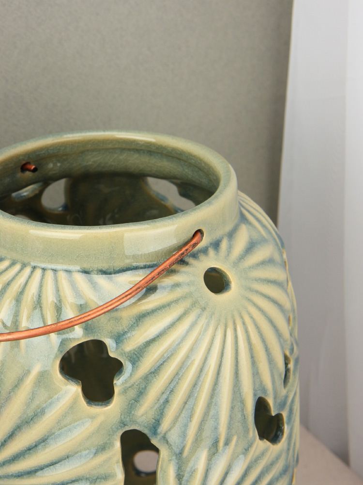 Керамический фонарь станет прекрасным дополнением к интерьеру как городской квартиры, так и загородного дома.