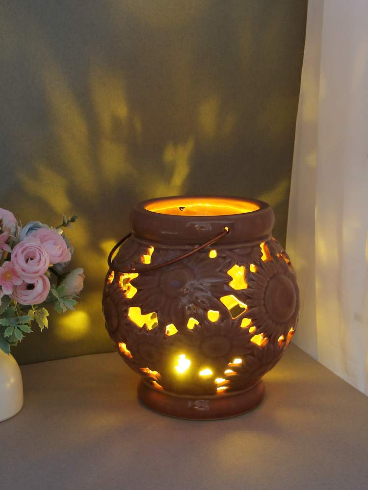 Керамический фонарь станет прекрасным дополнением к интерьеру как городской квартиры, так и загородного дома.