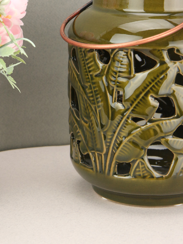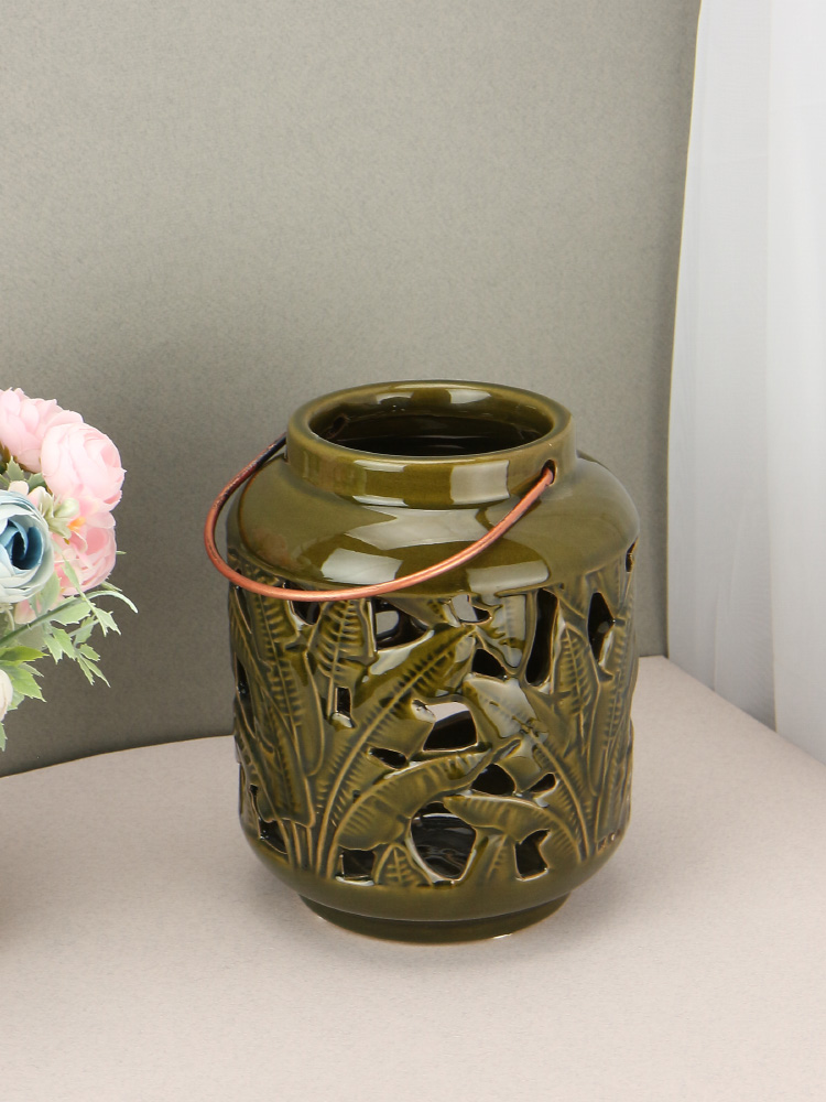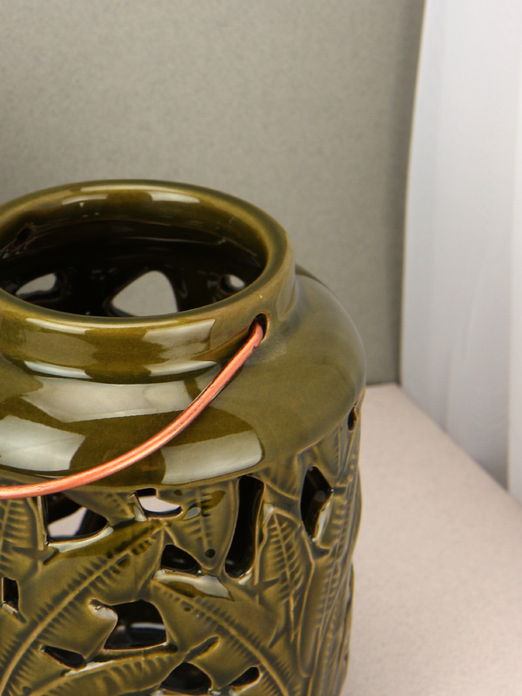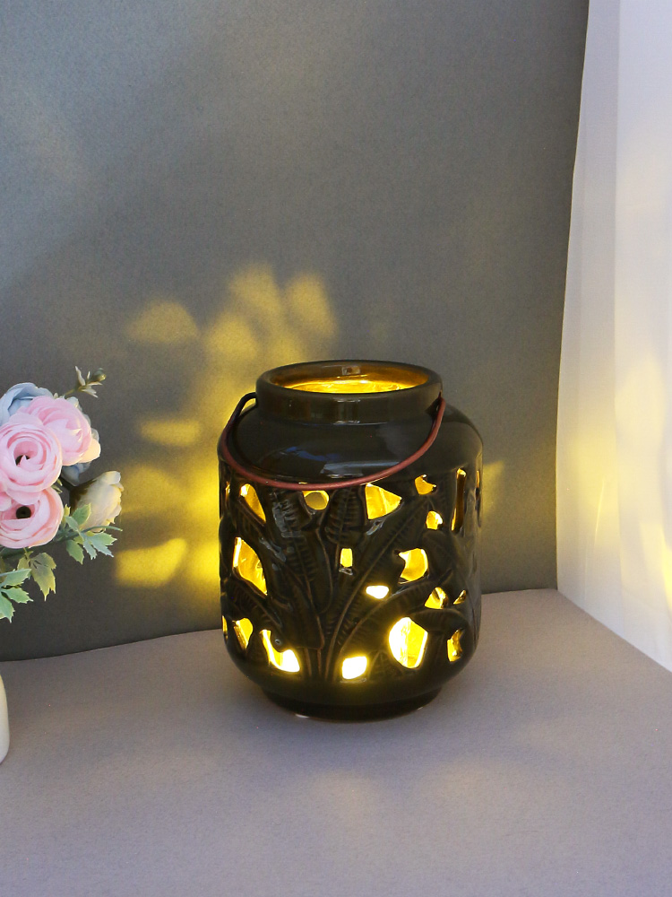 Керамический фонарь станет прекрасным дополнением к интерьеру как городской квартиры, так и загородного дома.