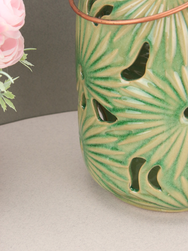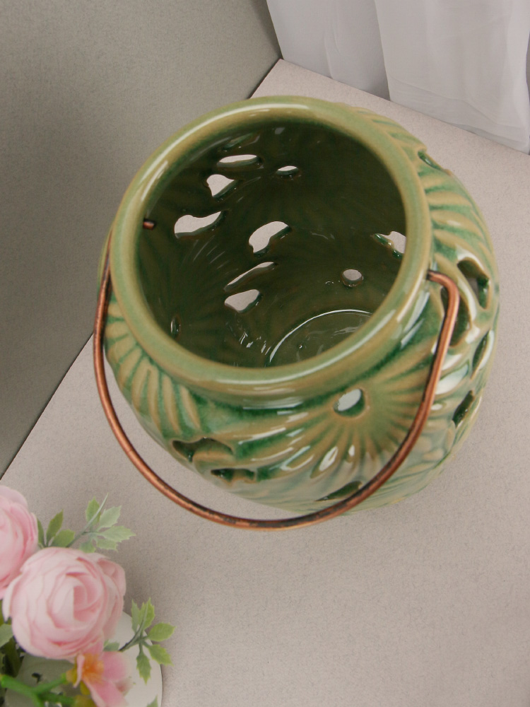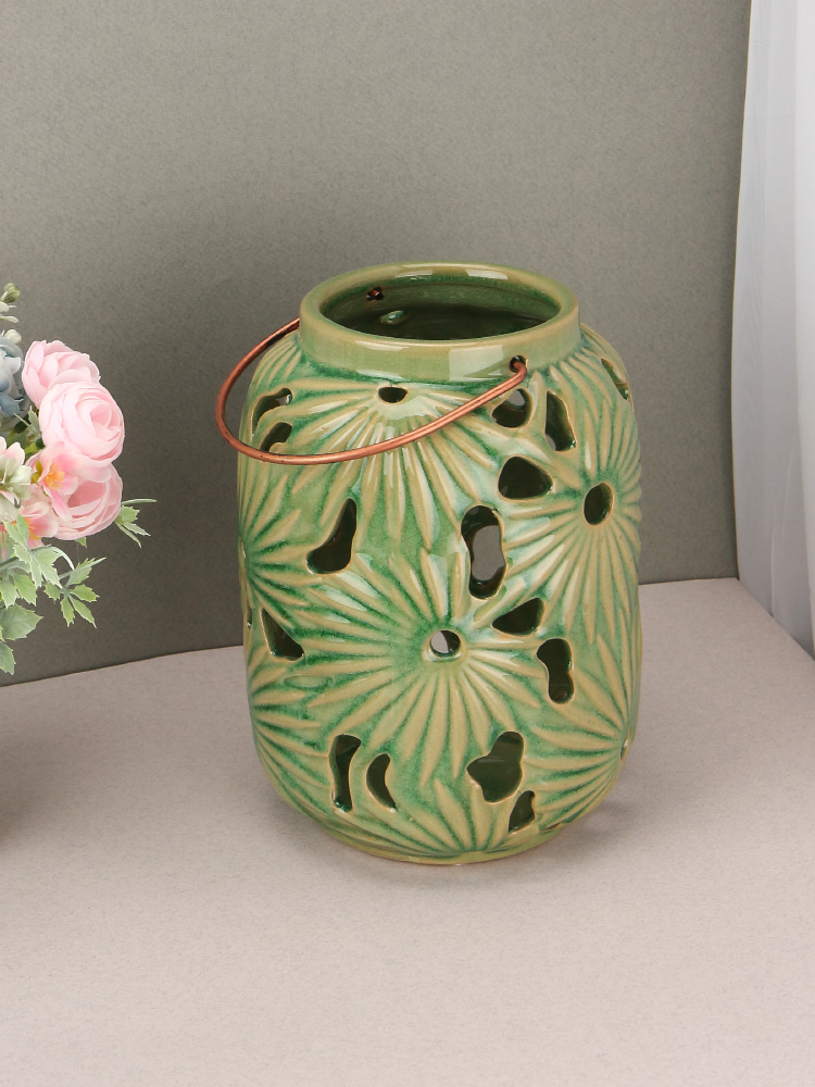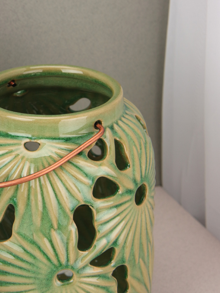 Керамический фонарь станет прекрасным дополнением к интерьеру как городской квартиры, так и загородного дома.