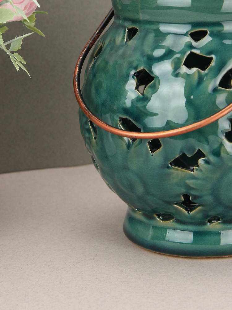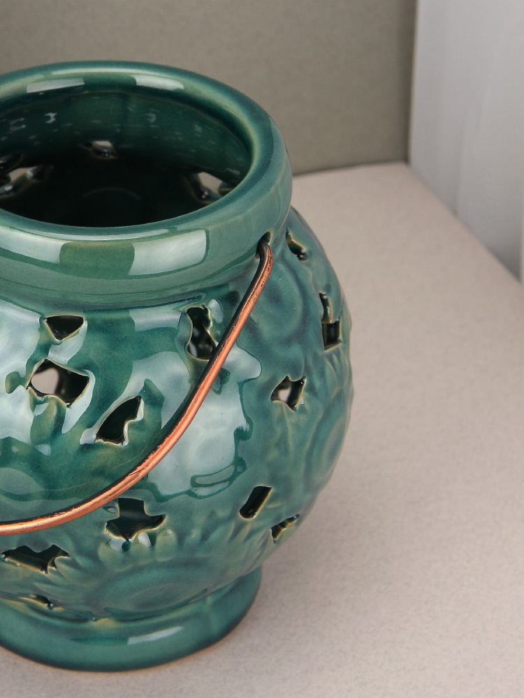Керамический фонарь станет прекрасным дополнением к интерьеру как городской квартиры, так и загородного дома.