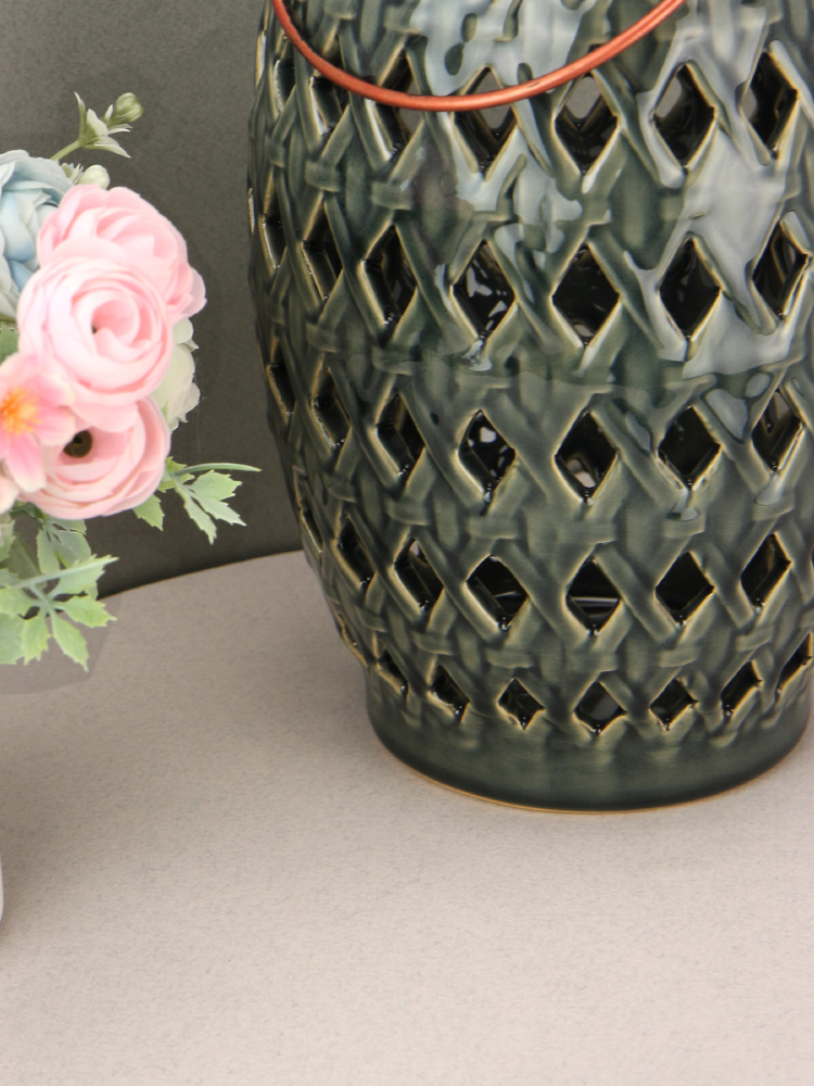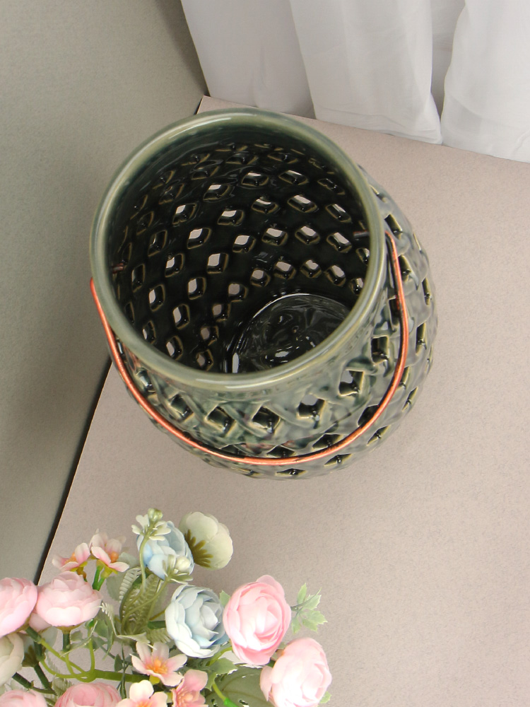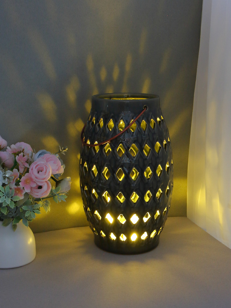 Керамический фонарь станет прекрасным дополнением к интерьеру как городской квартиры, так и загородного дома.