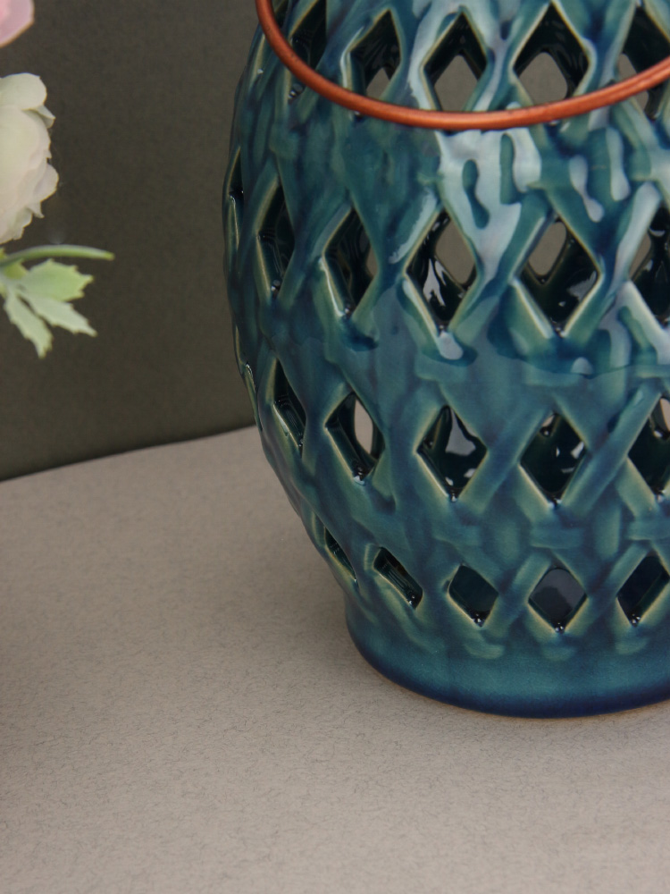 Керамический фонарь станет прекрасным дополнением к интерьеру как городской квартиры, так и загородного дома.
