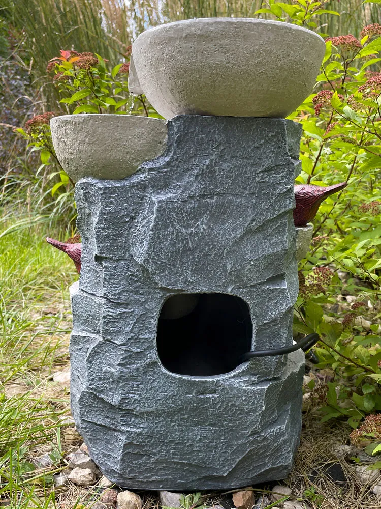 - Звуки каскадной воды: фонтан издает успокаивающие звуки и атмосферу в вашем саду, патио, веранде или во дворе.
