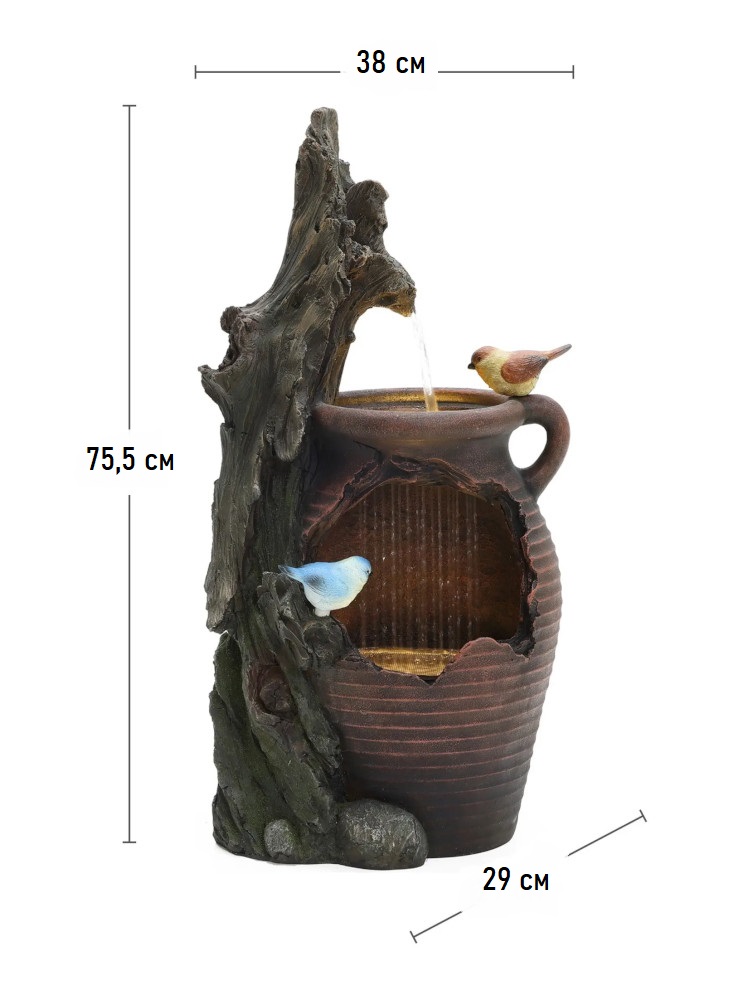 - Прочная конструкция: фонтан изготовлен из прочного полирезина, чтобы выдерживать самые суровые погодные условия. Он прочный, но легкий, что облегчает транспортировку в любое время, когда вам захочется изменить ландшафт.