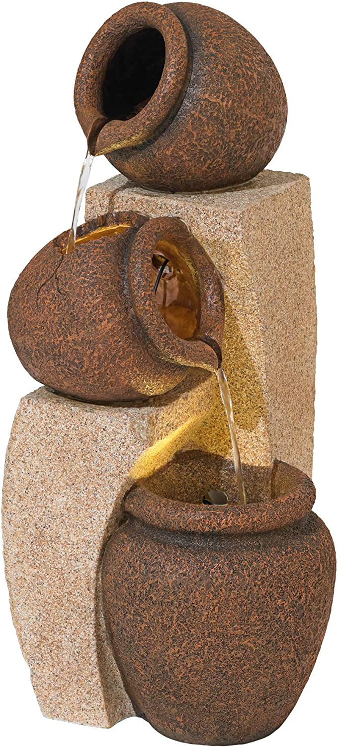 - Включает погружной насос: Наслаждайтесь успокаивающими звуками этого величественного фонтана, который каскадом стекает по каждому ярусу и циркулирует через электрический погружной насос, создавая завораживающий эффект. Питание насоса осуществляется при подключении шнура к стандартной электрической розетке.