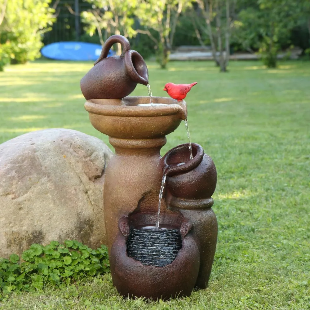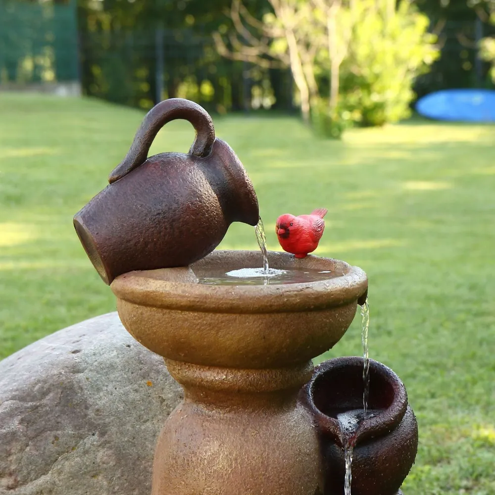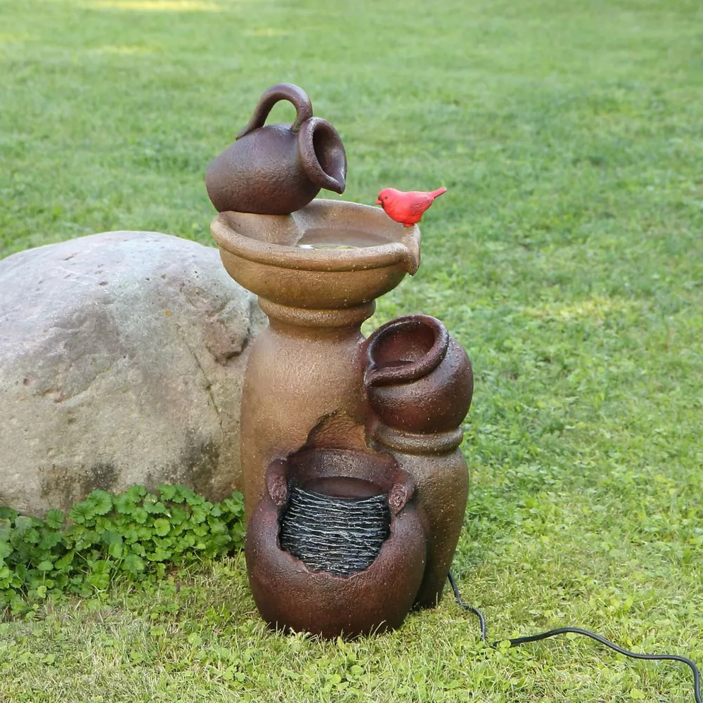 Этот фонтан с каскадными кувшинами станет идеальным дополнением к вашему декору и подойдет для использования в доме, офисе или в саду, патио, на террасе, во дворе и на крыльце.