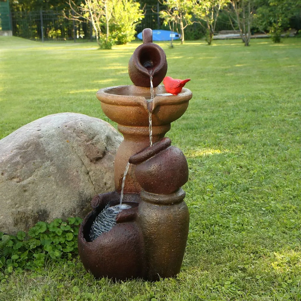 - Звуки каскадной воды: фонтан издает успокаивающие звуки и атмосферу в вашем саду, патио, веранде или во дворе.