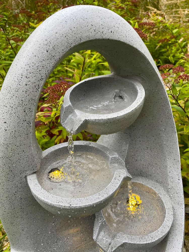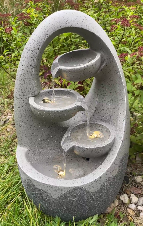 - Звуки каскадной воды: фонтан издает успокаивающие звуки и атмосферу в вашем саду, патио, веранде или во дворе.