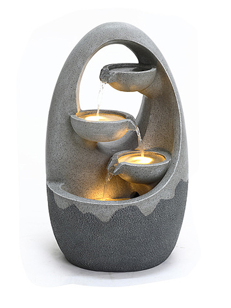 - Включает погружной насос: Наслаждайтесь успокаивающими звуками этого величественного фонтана, который каскадом стекает по каждому ярусу и циркулирует через электрический погружной насос, создавая завораживающий эффект. Питание насоса осуществляется при подключении шнура к стандартной электрической розетке.