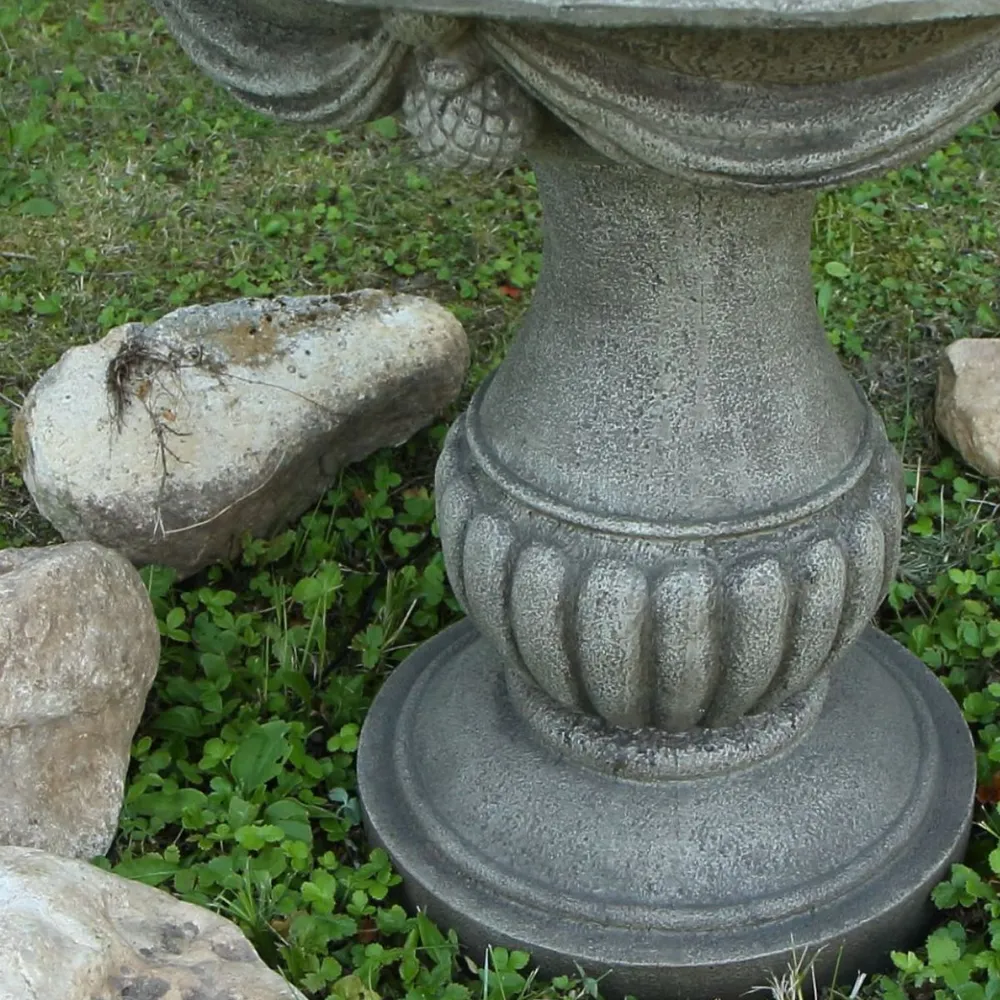 Фонтан выполнен из прочного материала - полирезина серого цвета, который устойчив к внешним атмосферным воздействиям, ржавчине, растрескиванию и очень долговечен.