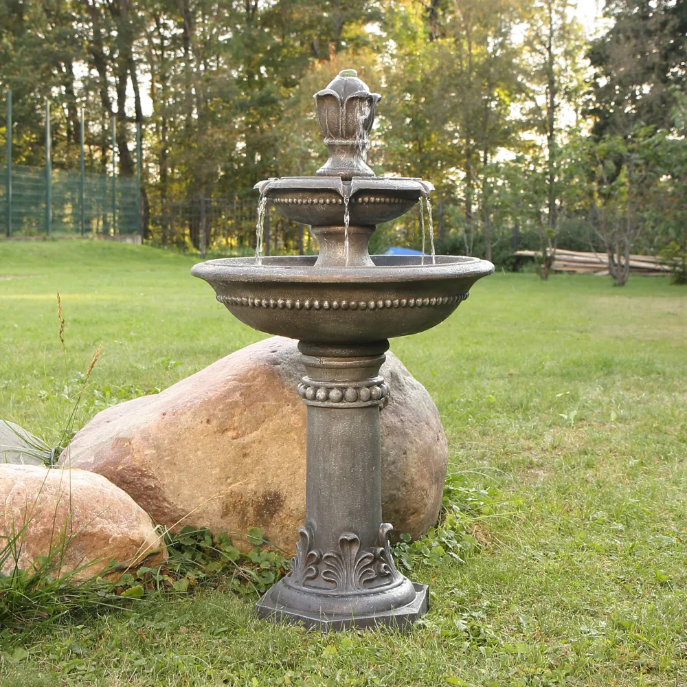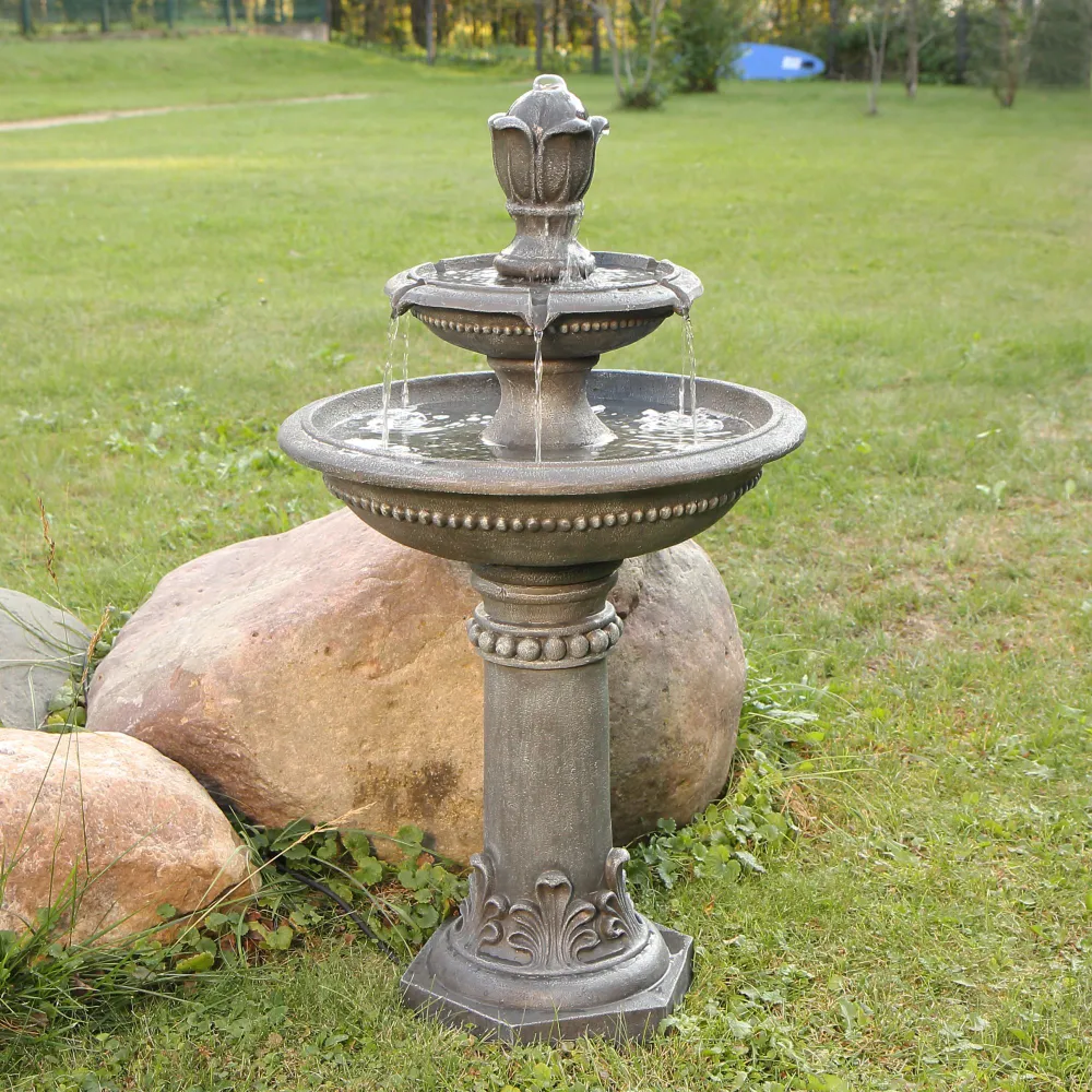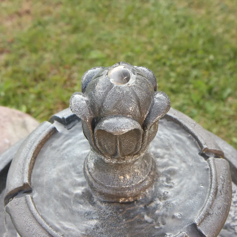 - Включает погружной насос: Наслаждайтесь успокаивающими звуками этого величественного фонтана, который каскадом стекает по каждому ярусу и циркулирует через электрический погружной насос, создавая завораживающий эффект. Питание насоса осуществляется при подключении шнура к стандартной электрической розетке.
