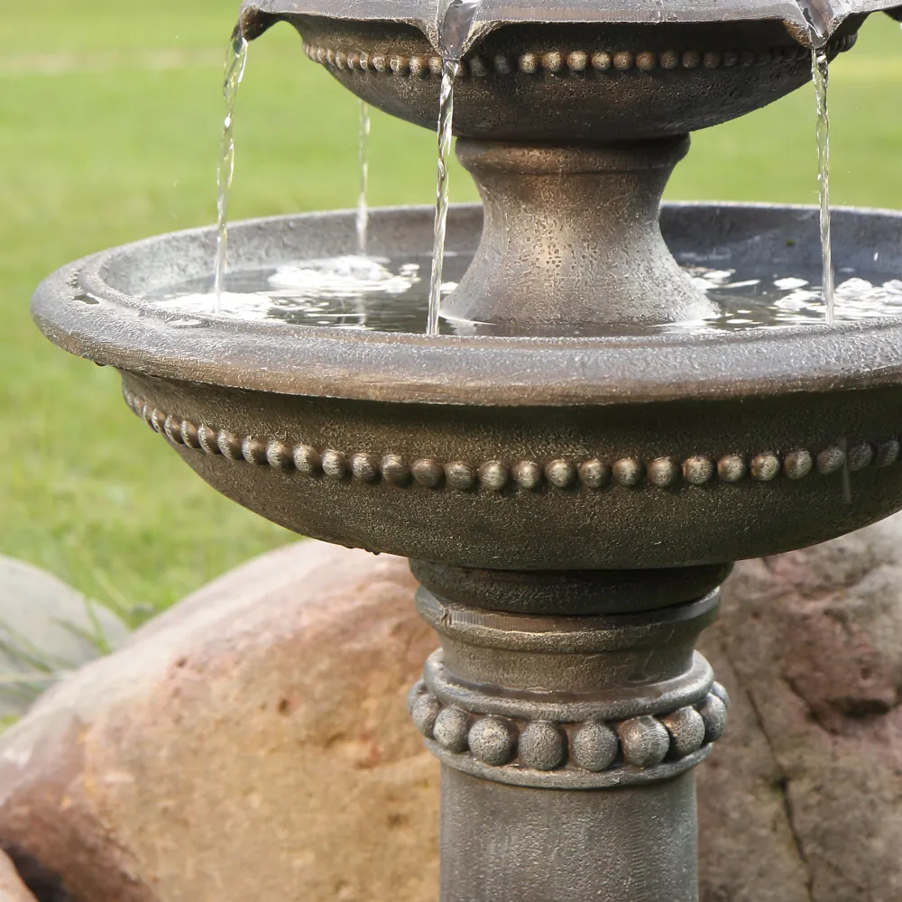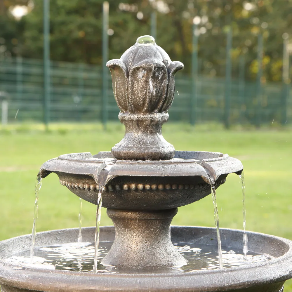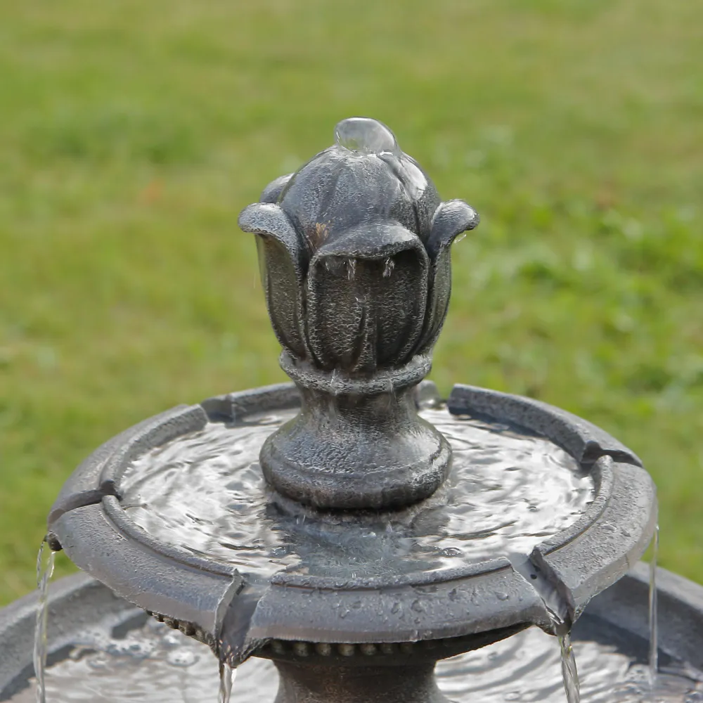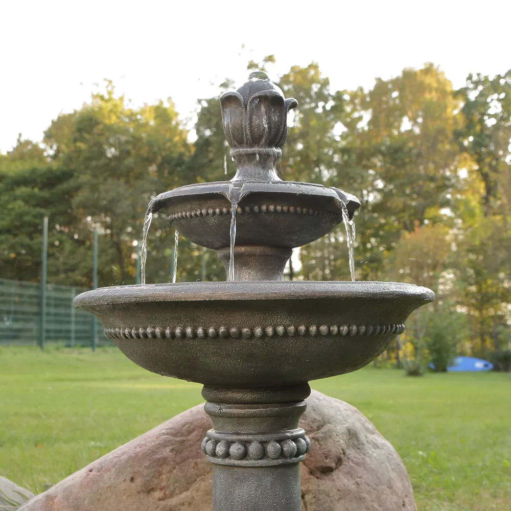 - Включает погружной насос: Наслаждайтесь успокаивающими звуками этого величественного фонтана, который каскадом стекает по каждому ярусу и циркулирует через электрический погружной насос, создавая завораживающий эффект. Питание насоса осуществляется при подключении шнура к стандартной электрической розетке.