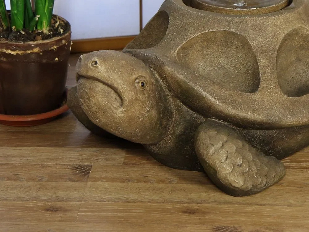 Садовый фонтан в виде черепахи – отличное средство освежить дизайн вашего двора или сада.