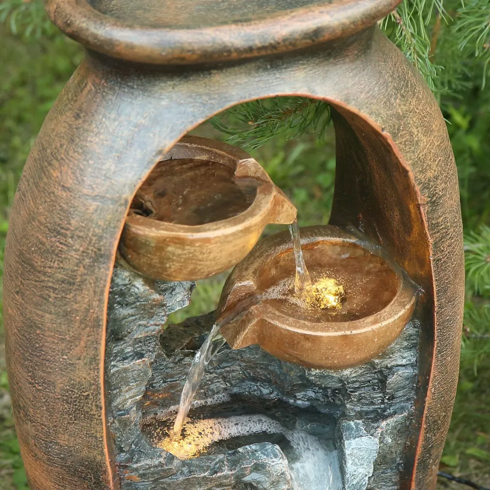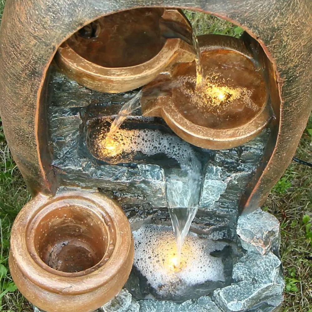 - Звуки каскадной воды: фонтан издает успокаивающие звуки и атмосферу в вашем саду, патио, веранде или во дворе.