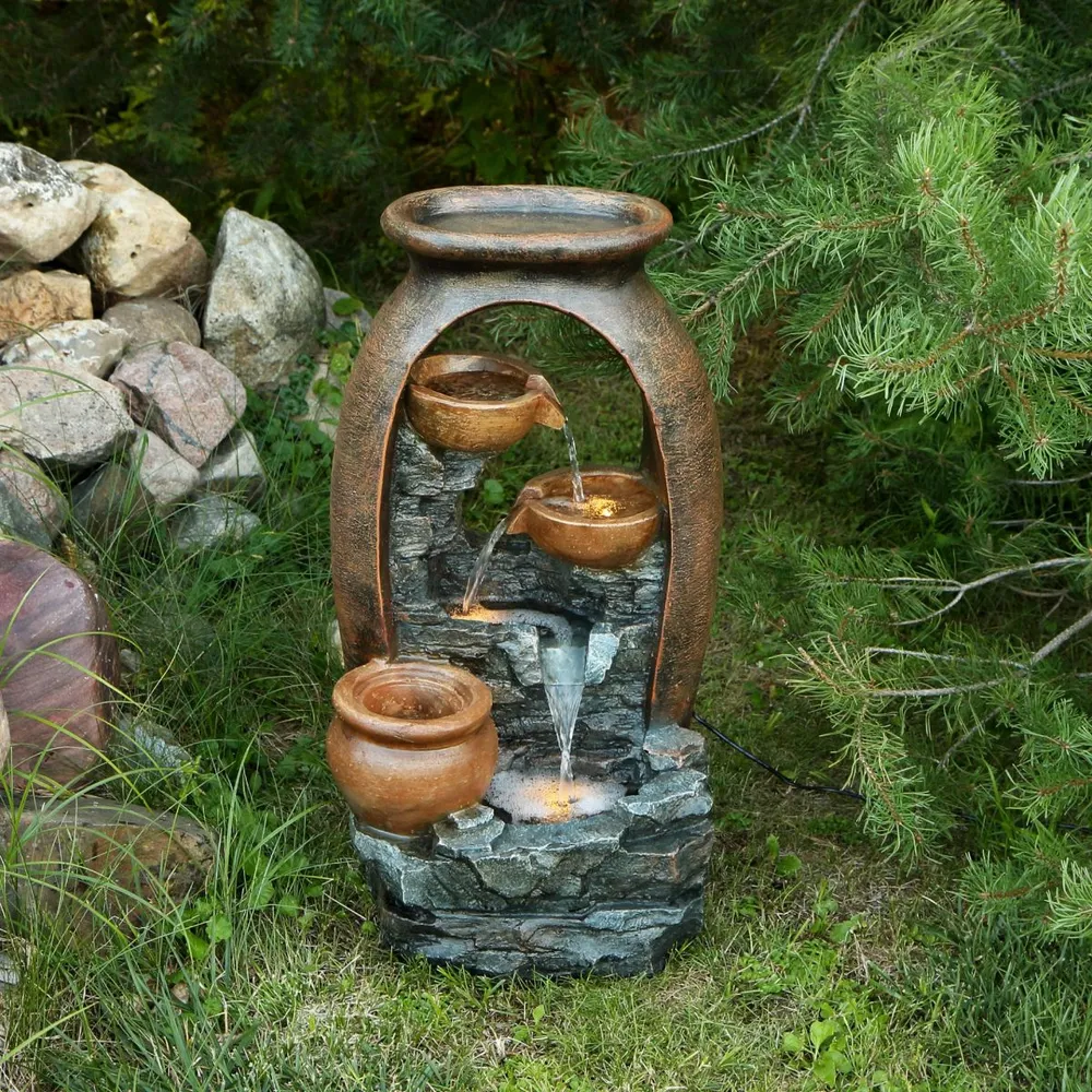 - Включает погружной насос: Наслаждайтесь успокаивающими звуками этого величественного фонтана, который каскадом стекает по каждому ярусу и циркулирует через электрический погружной насос, создавая завораживающий эффект. Питание насоса осуществляется при подключении шнура к стандартной электрической розетке.