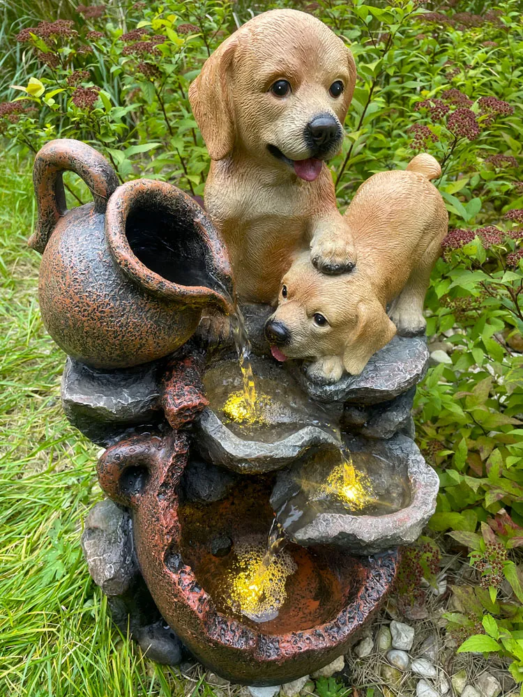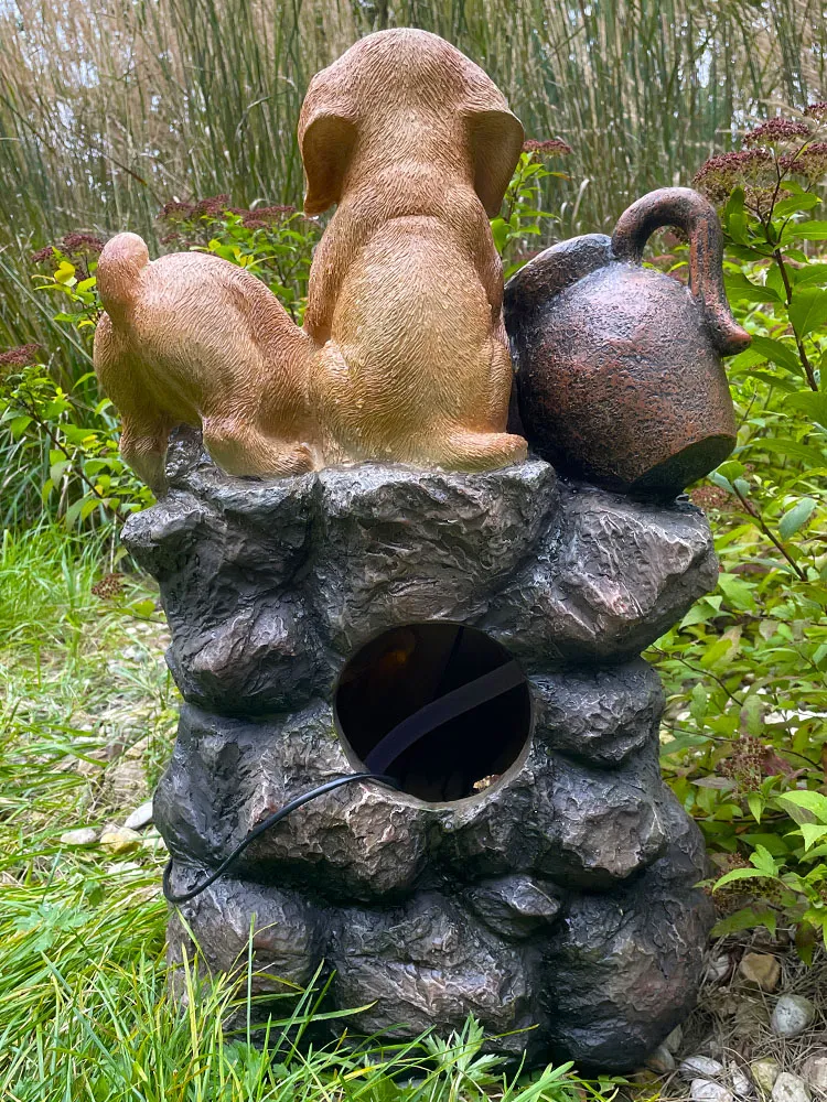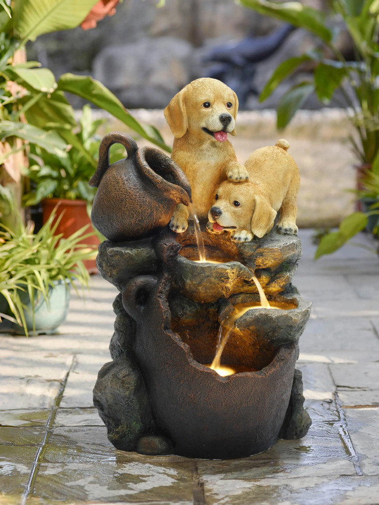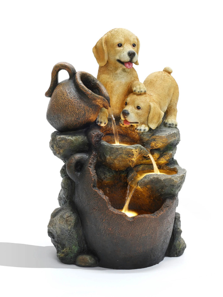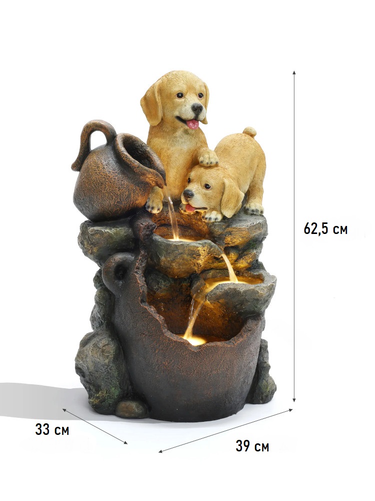 Фонтан декоративный "Щенки" с подсветкой