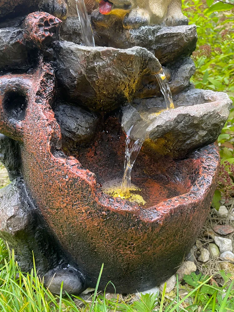 - Прочная конструкция: фонтан изготовлен из прочного полирезина, чтобы выдерживать самые суровые погодные условия. Он прочный, но легкий, что облегчает транспортировку в любое время, когда вам захочется изменить ландшафт.