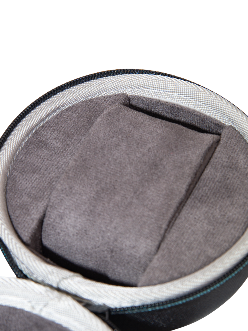Внутри мягким бархатистой на ощупь вельветом классического черного цвета.