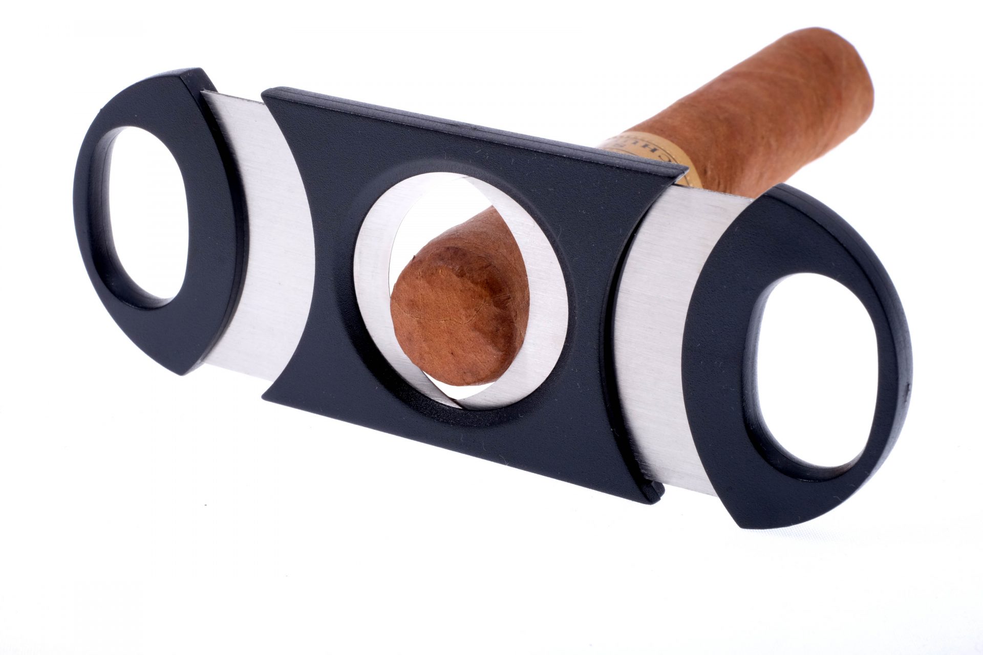 Сигарная гильотина увеличенного размера от немецкого табачного бренда Passatore. Проста в исполнении, но при этом очень удобна в использовании. Изготовлена из пластика (корпус) и нержавеющей стали (лезвия) высокого качества. Для любых сигар диаметром вплоть до 32 мм (ring gage 80)