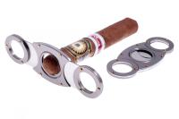 Сигарная гильотина от известного немецкого табачного бренда Passatore. Проста в исполнении, но при этом очень удобна и эффективна в использовании. Изготовлена из нержавеющей стали. Для сигар диаметром до 21 мм. Фирменная подарочная коробка.