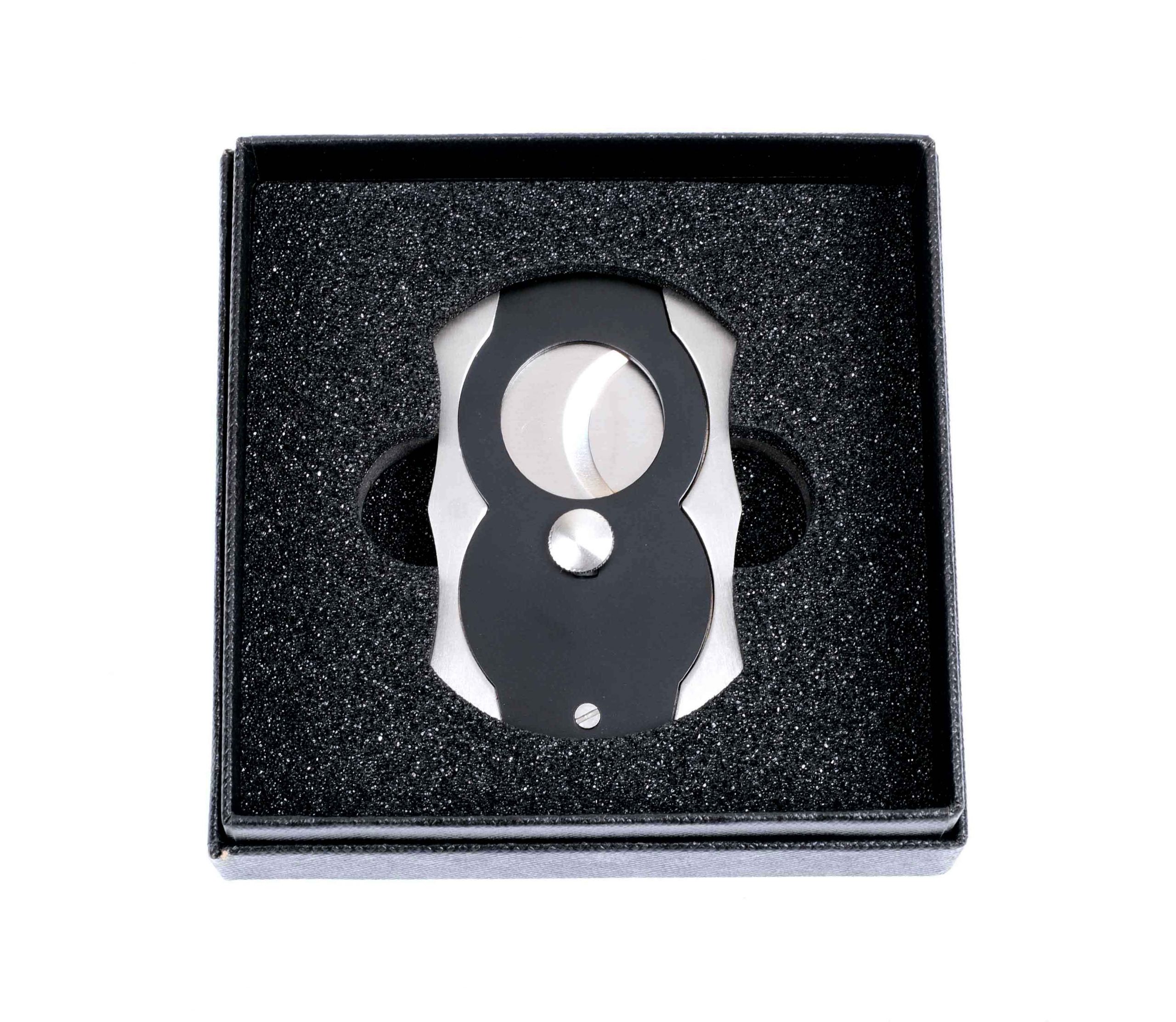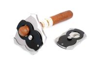 Сигарная гильотина от известного немецкого табачного бренда Passatore. Проста в исполнении, но при этом очень удобна и эффективна в использовании. Изготовлена из нержавеющей стали. Для сигар диаметром до 21 мм. Фирменная подарочная коробочка.