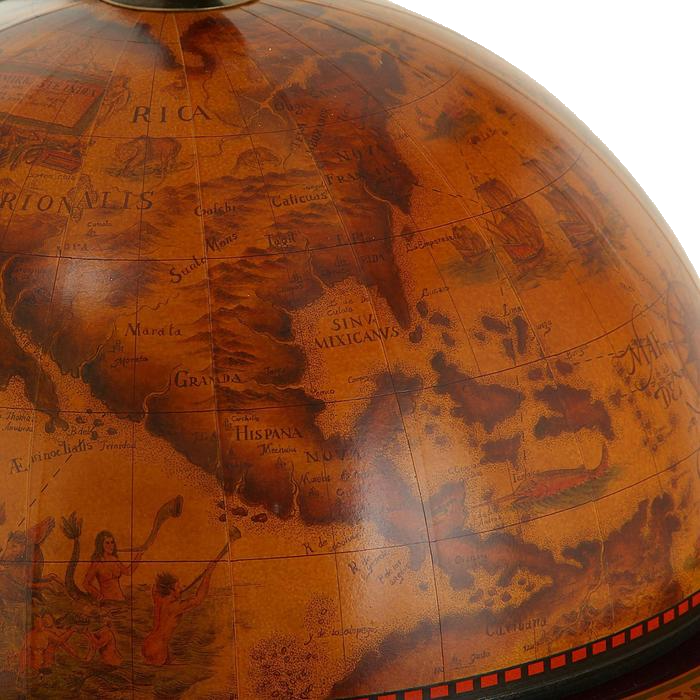 Внутреннюю часть глобуса украшают изображения птиц, зверей или античных фигур.