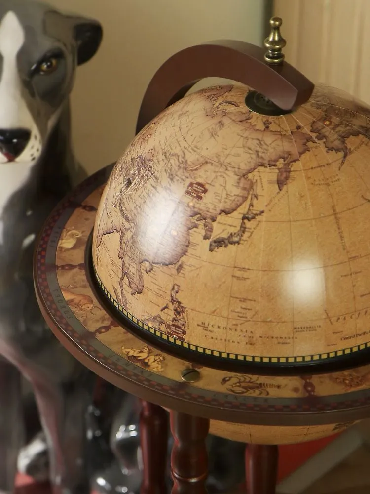 Внутреннюю часть глобуса украшают изображения птиц, зверей или античных фигур.