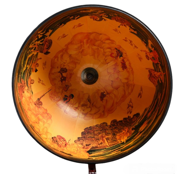 Внутреннюю часть глобуса украшают изображения птиц, зверей или античных фигур.
