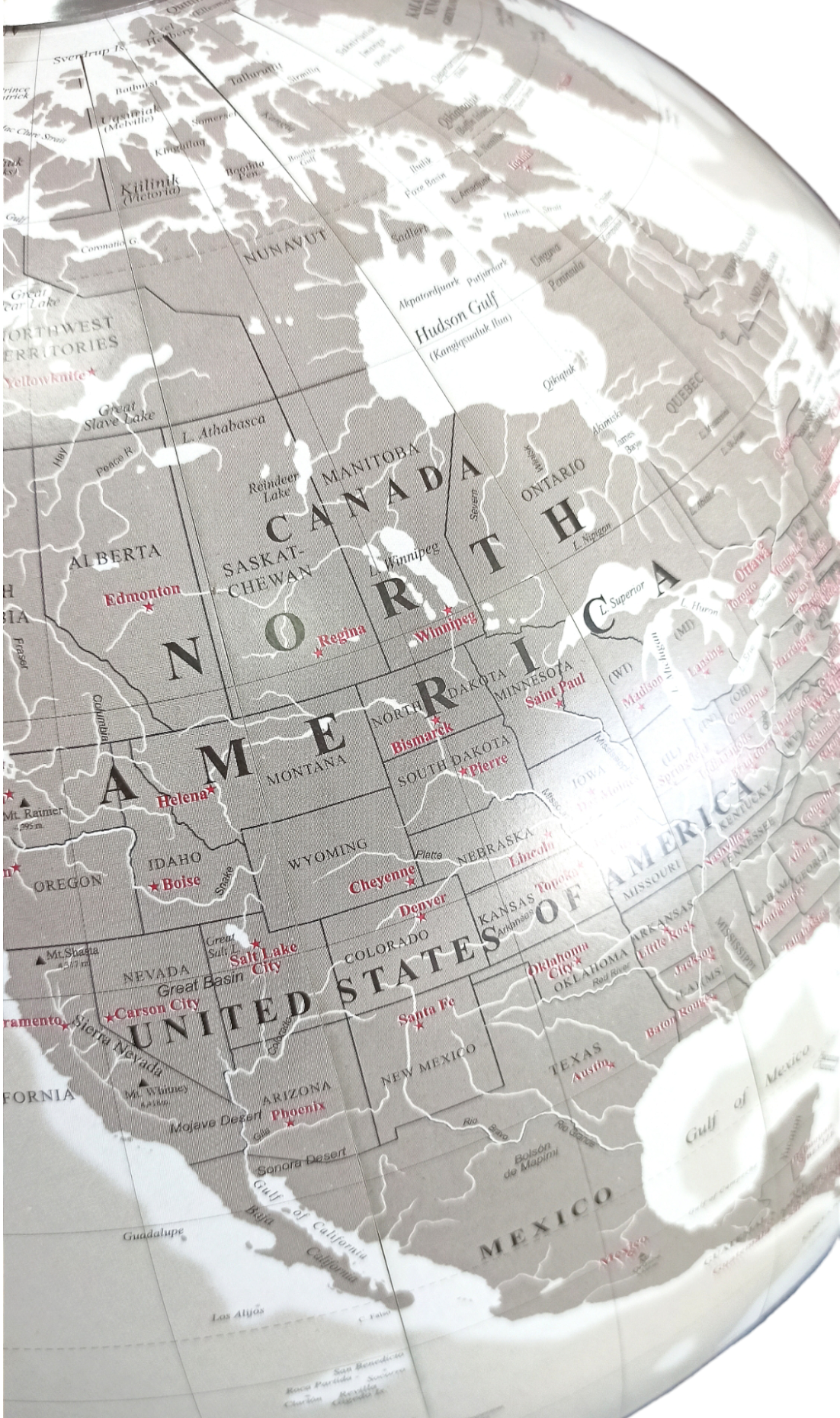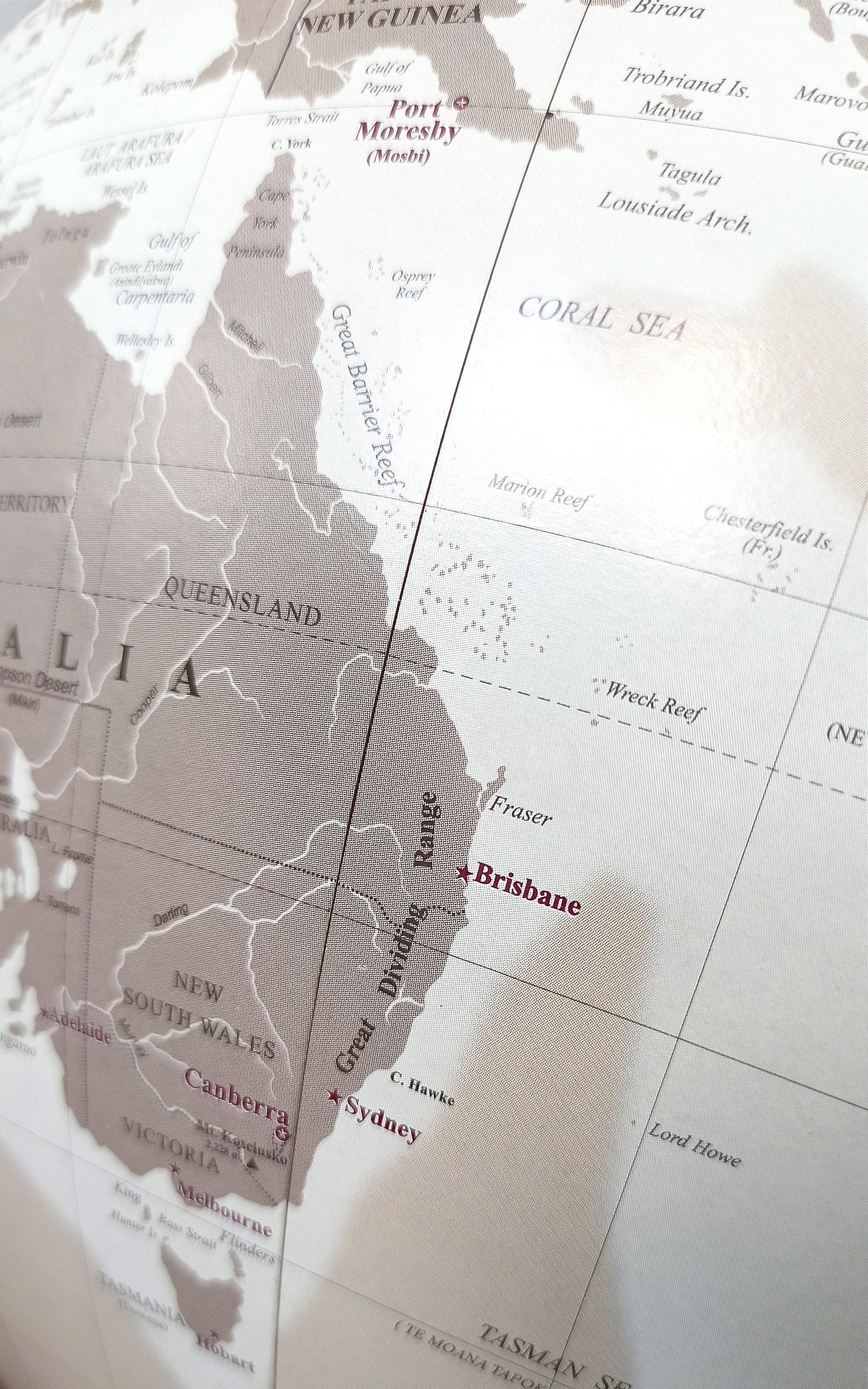- Виниловый материал с изображением карты нанесен на поверхность сферы качественно.