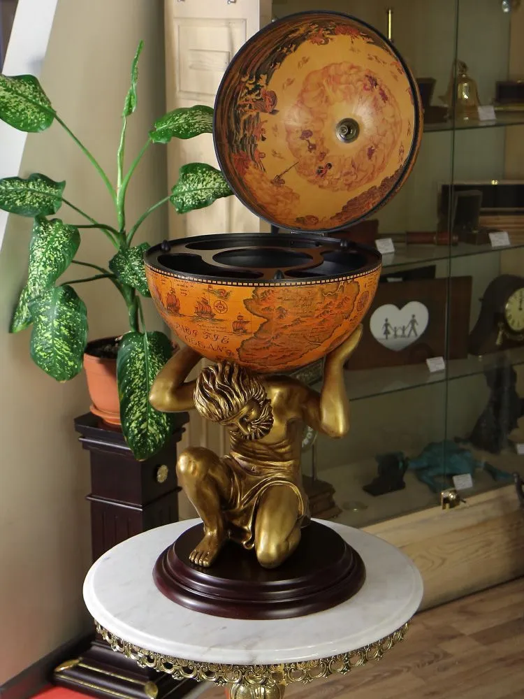 Внутреннюю часть глобуса украшают изображения птиц, зверей или античных фигур.