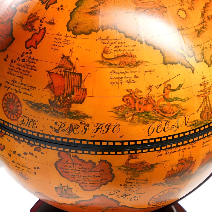 Внутреннюю часть глобуса украшают изображения птиц, зверей или античных фигур.