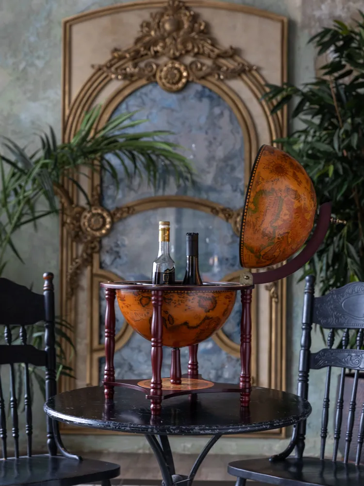Внутреннюю часть глобуса украшают изображения птиц, зверей или античных фигур.