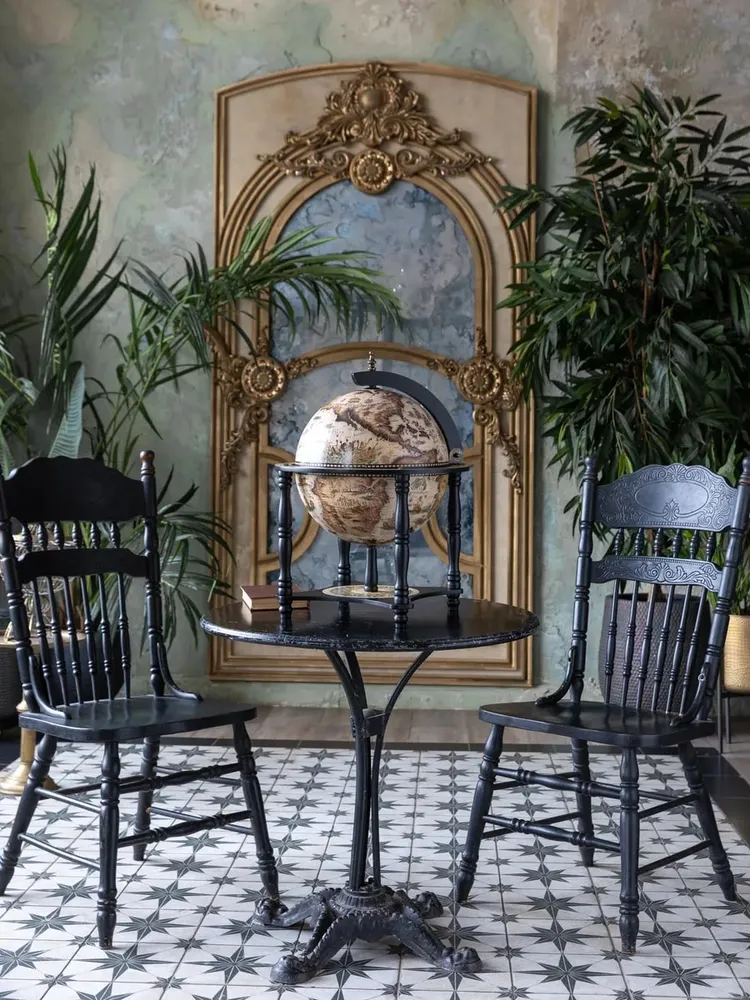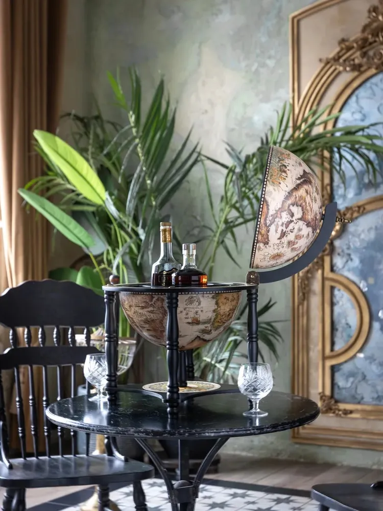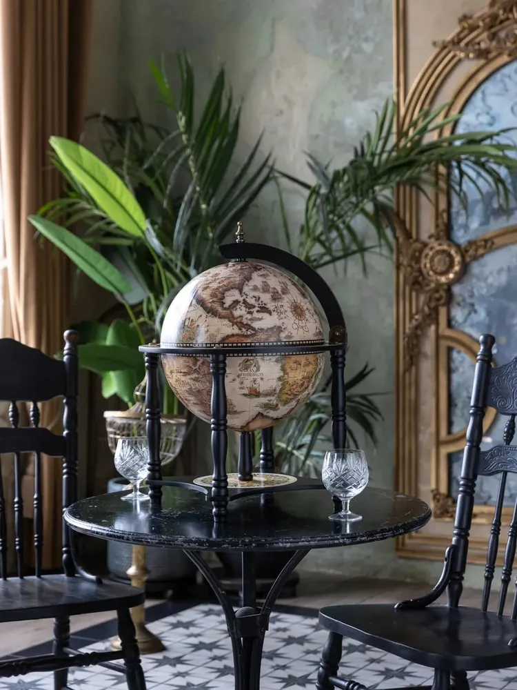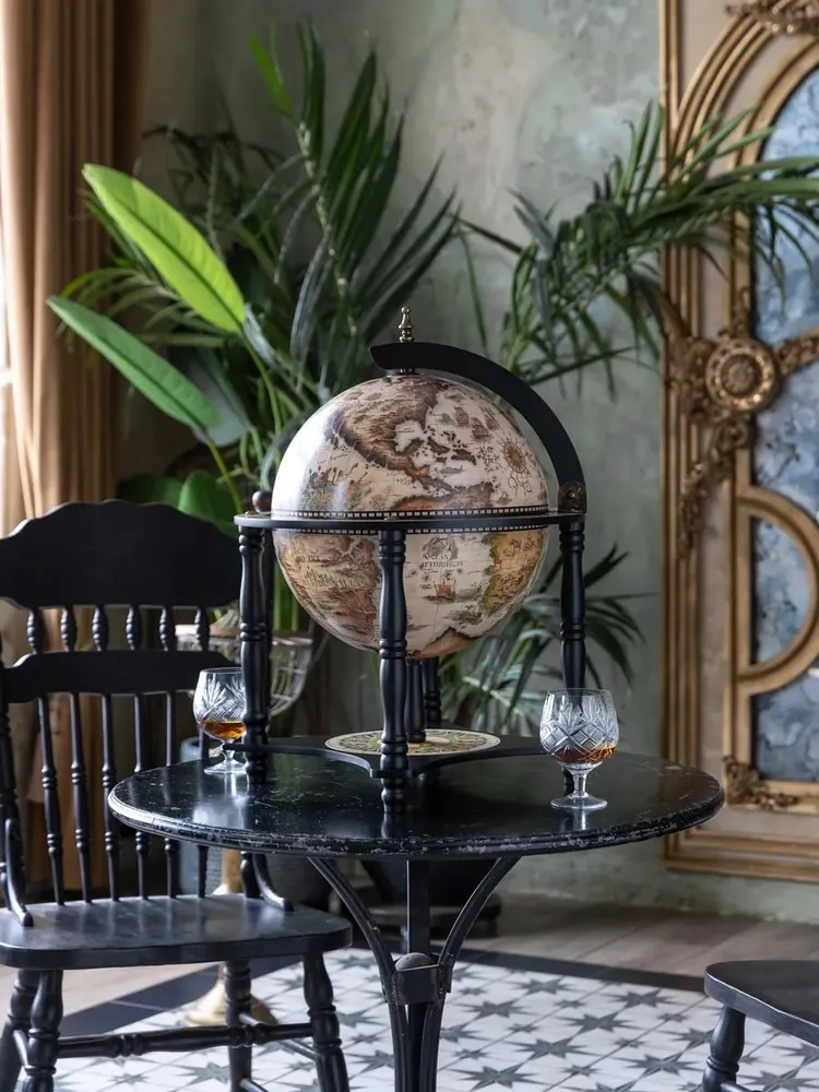 Внутреннюю часть глобуса украшают изображения птиц, зверей или античных фигур.