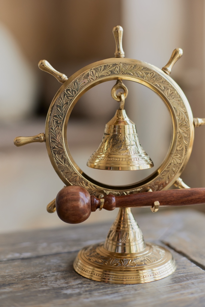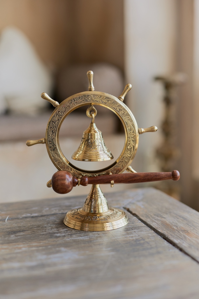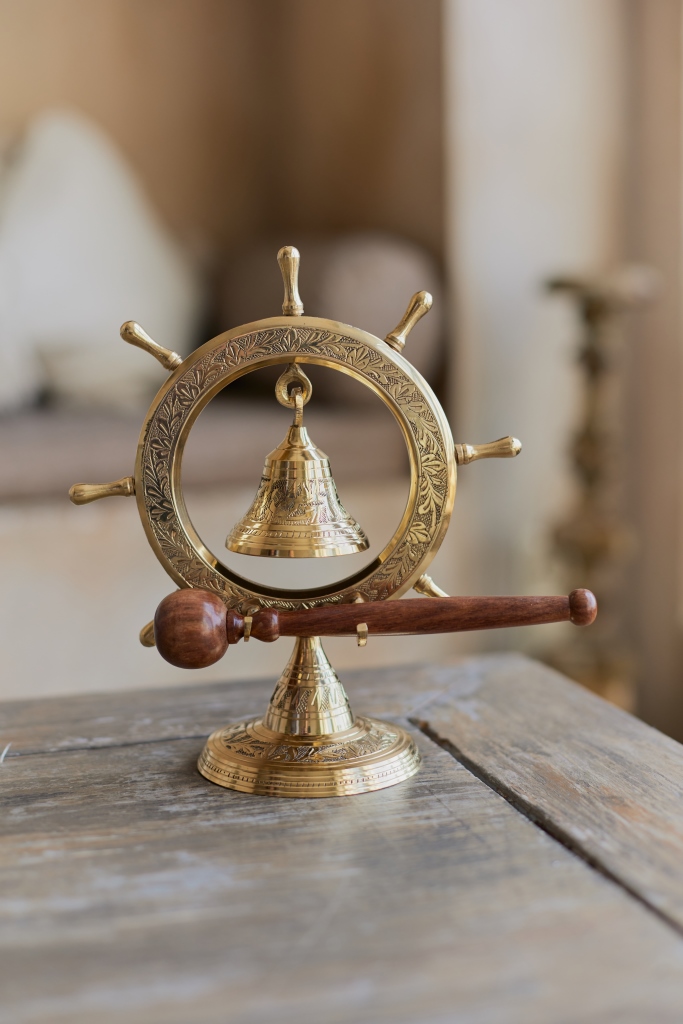 Гонг обеденный "Штурвал" латунь резная CHUNIYA JALI полированный 9"