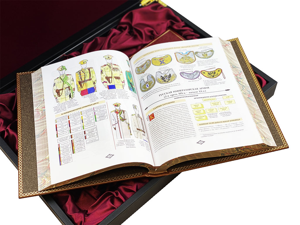 Издание обладает подробными описаниями званий, изображениями униформы и знаков отличия представителей российской армии или отдельных подразделений (артиллерийских, пехоты, казачьих или военно-морских).