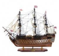 В 1778 г. "Victory" вошел в строй и был объявлен флагманским кораблем британского военно-морского флота. Он имел водоизмещение 3500 тонн, длину 69 м, ширину 16 м и осадку 6,6 м. Корабль, действительно, по тем временам был большим и красивым. Согласно официальным документам Адмиралтейства, строительная стоимость "Victory" составила 63 176 фунтов стерлингов.
